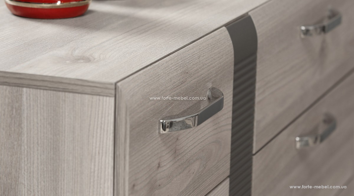 Коллекция Locarno от производителя Meble Forte представляет собой модный дизайн мебели для гостиной и столовой. То, что отличает его от других, - это приятные яркие цвета в декоре из дуба Нельсона, отличающиеся рифленым структурным покрытием в сером коврике.