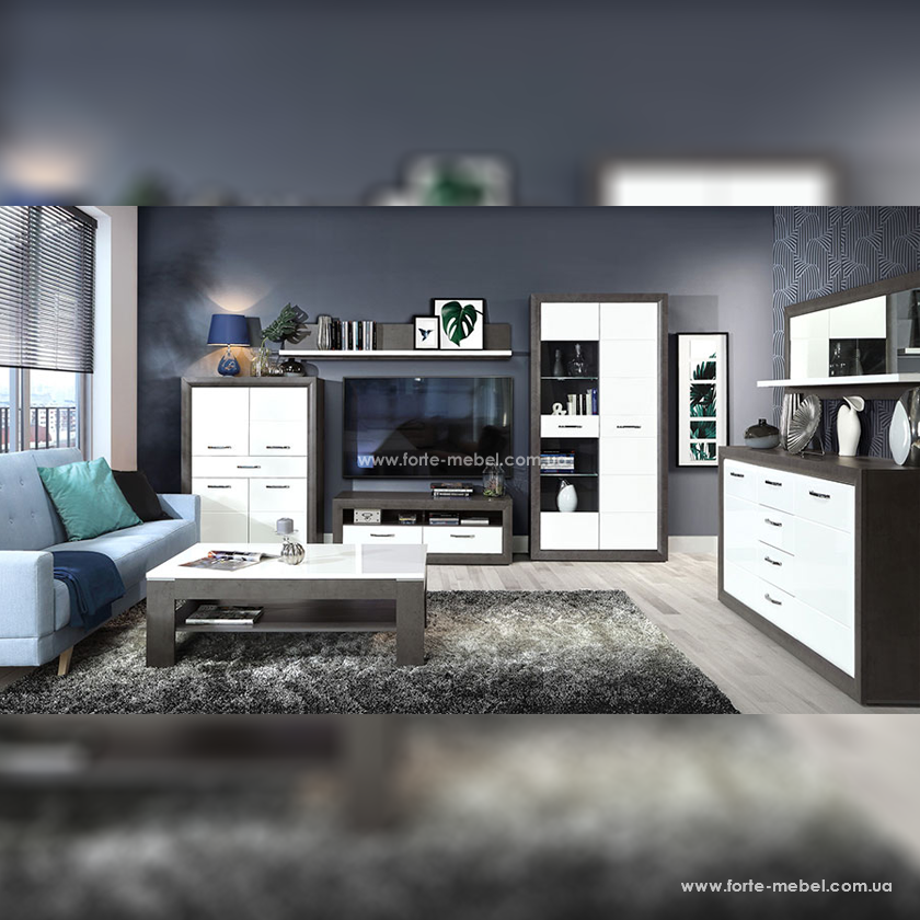 Купити в Україні Вітрина Lennox New ENXV721L (Вітальня Lennox New) виробництва польської меблевої фабрики Форте (Forte). Доставимо напряму з Польші до вас на адресу. Найкраща ціна і умови покупки..