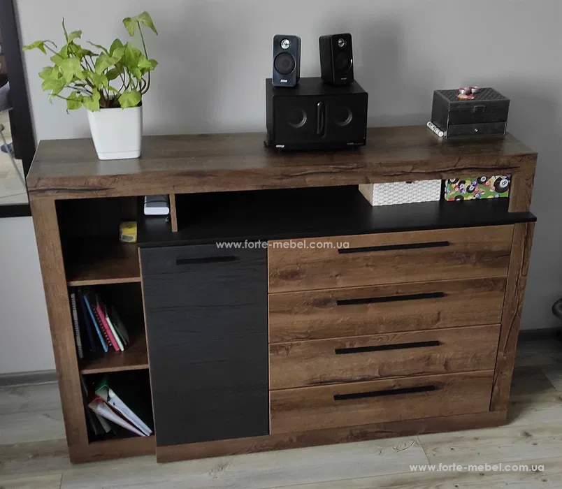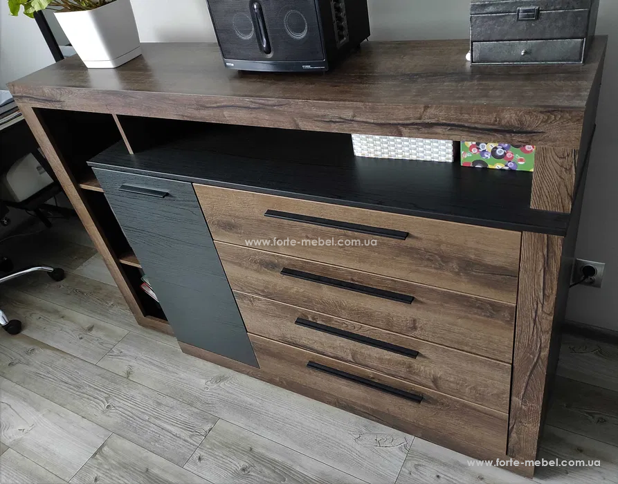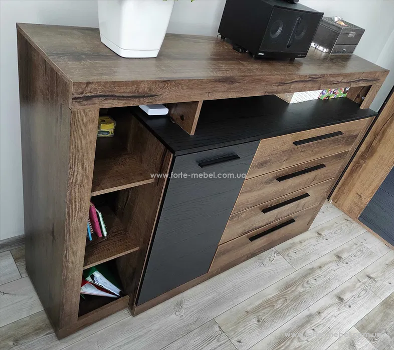 Комод доступен в цветовой комбинации: Благородный Дуб и Черный Дуб.