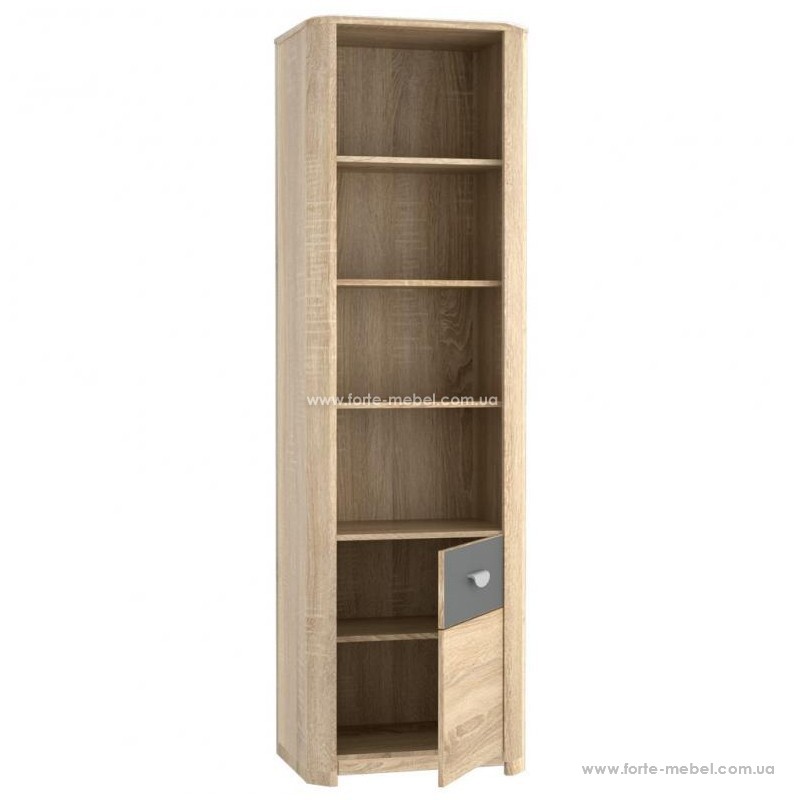 Книжный пенал из коллекции YOOP. Изготовлен в декоре Дуб Сонома с вставкой из серого мата на передней части ящика. Мебель предоставит дополнительное пространство для хранения книг и других вещей, как в молодежной комнате, так и в гостиной.